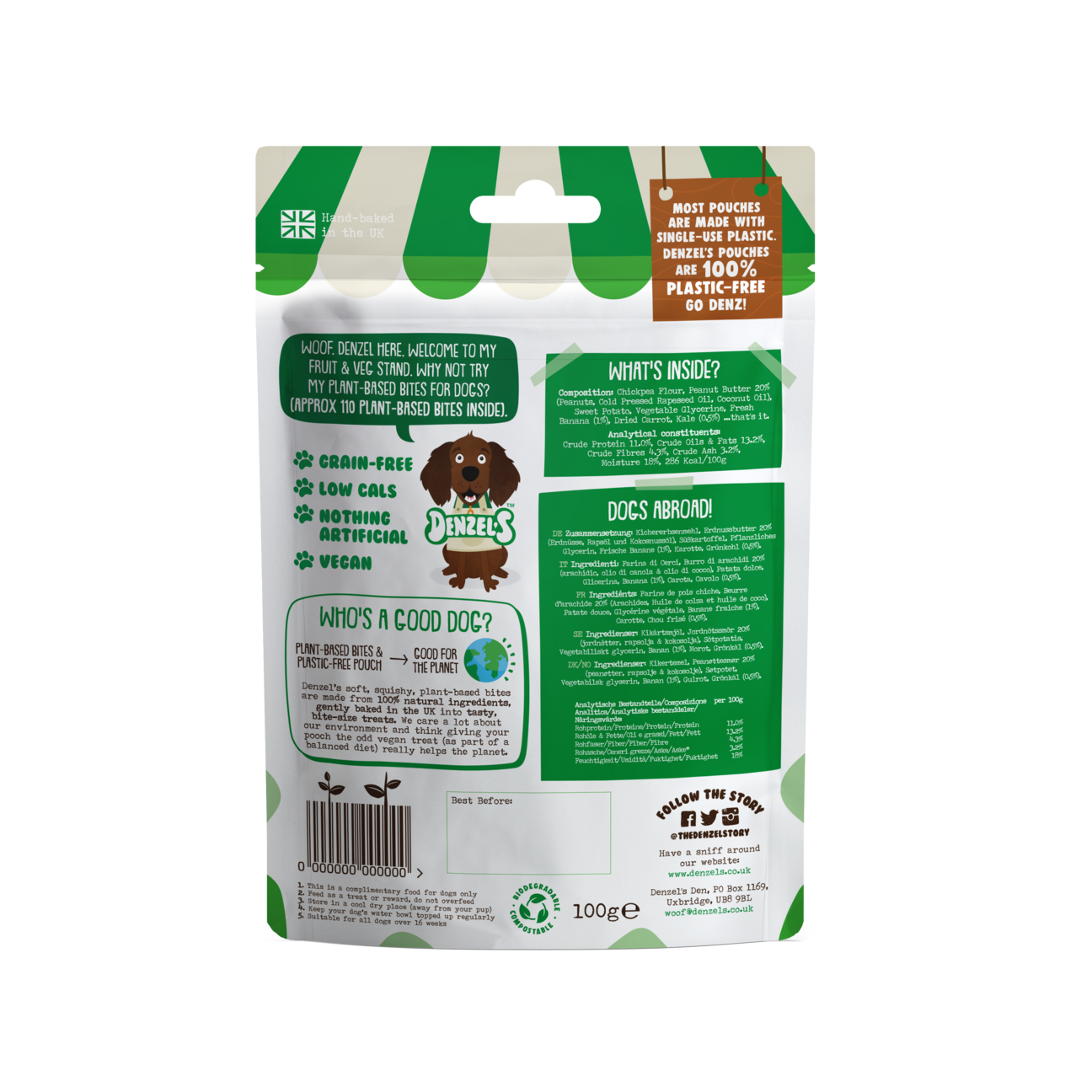Denzel's soft, squishy bites are made from 100% natural ingredients, gently baked in the UK into tasty, bite-size treats. Don't worry they're low cal so perfect for training or on-the-go.