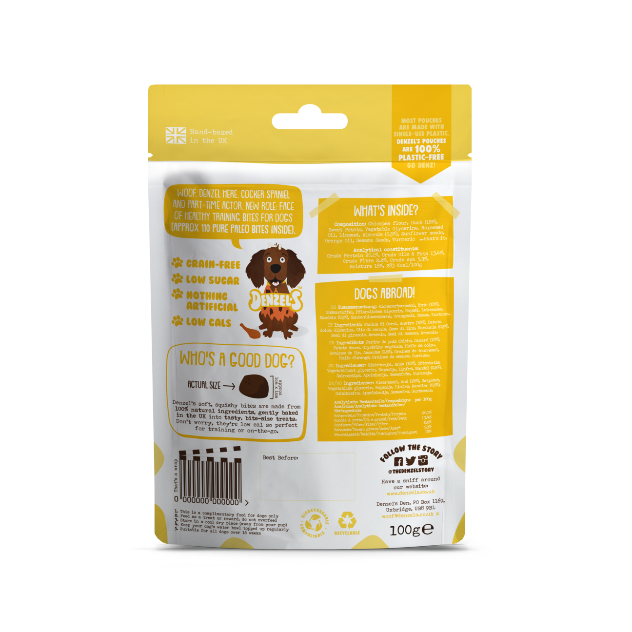 Denzel's soft, squishy bites are made from 100% natural ingredients, gently baked in the UK into tasty, bite-size treats. Don't worry they're low cal so perfect for training or on-the-go.