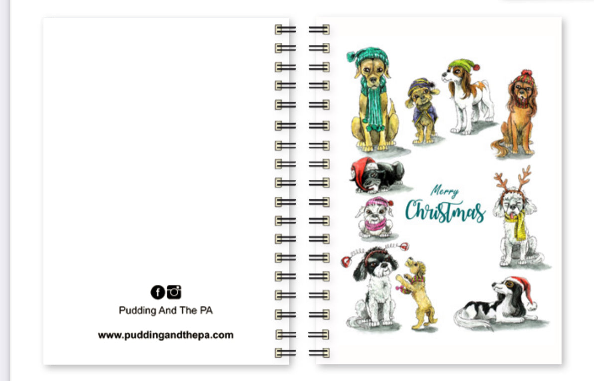 The notebook features a beautiful festive illustration of Lucy, Lady, Annabelle, Betty, Minnie, Plum Pudding, Dottie, Wilma, Daphne and Hettie